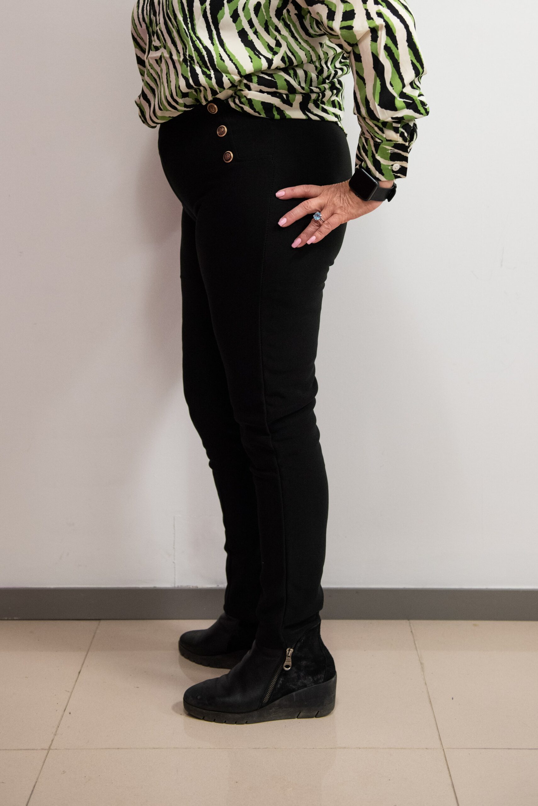 Malla en color negro con botones dorados para mujer.