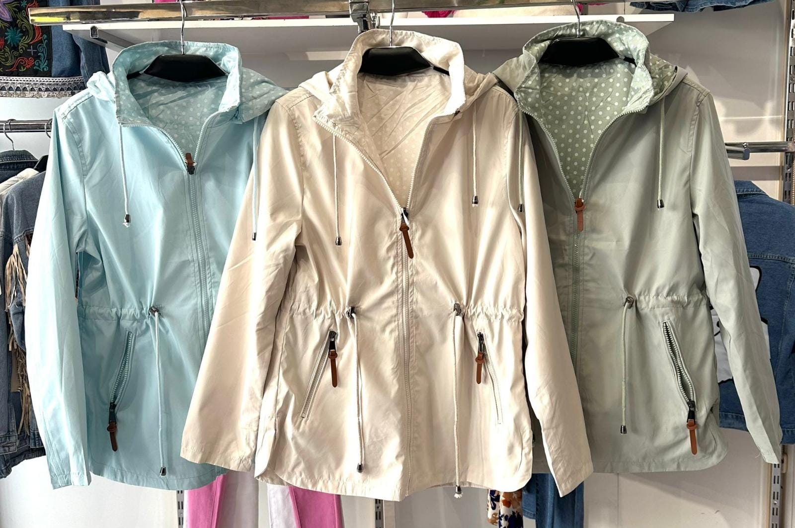 Parka reversible ,colores primaverales ,